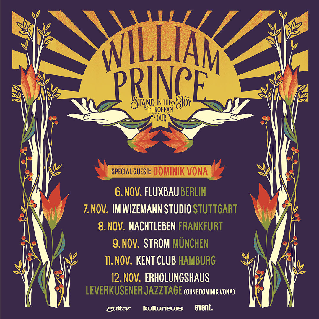Ich freue mich sehr beim kanadischen Singer Songwriter William Prince der herrlich warme, kernig, folkige Popmusik macht mit dabei zu sein und lade euch herzlich ein vorbei zu kommen.